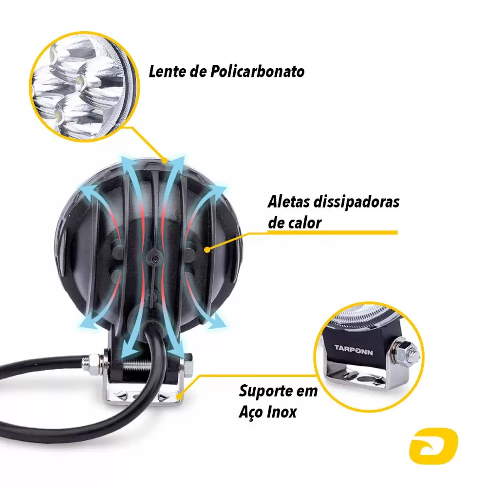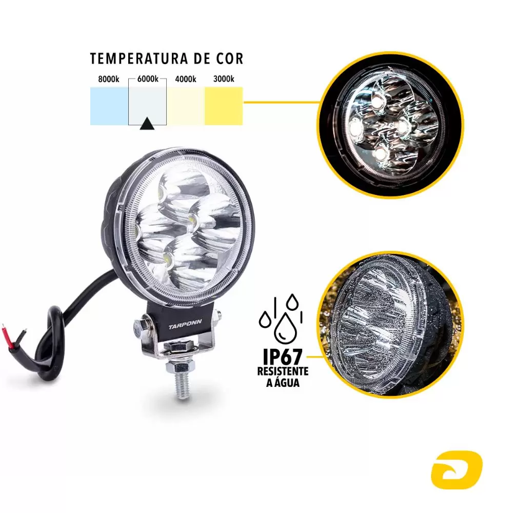 Não perca tempo e invista no melhor, com o Farol Auxiliar TARPONN Redondo 4 LEDs 12w 9~60v 6000K!