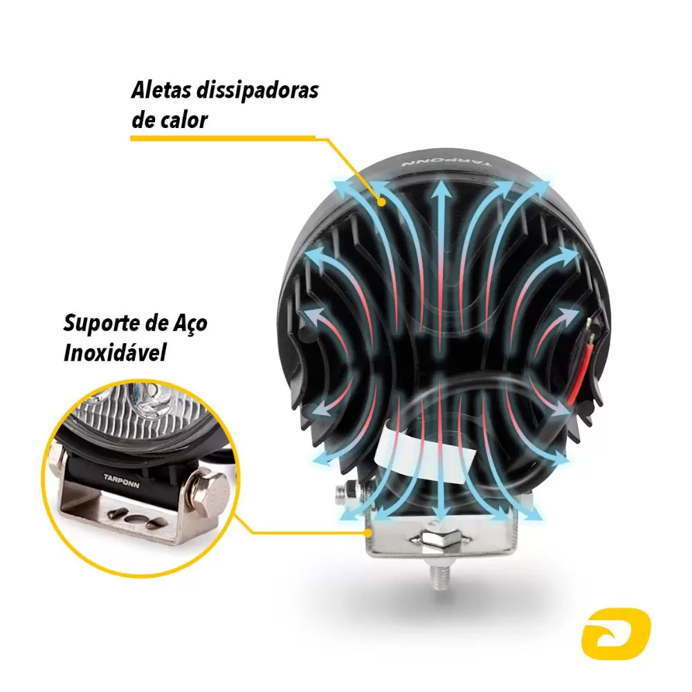 A tecnologia que você sempre buscou, está no Farol Auxiliar TARPONN Redondo 9 LEDs 27W 9~60v Azul!