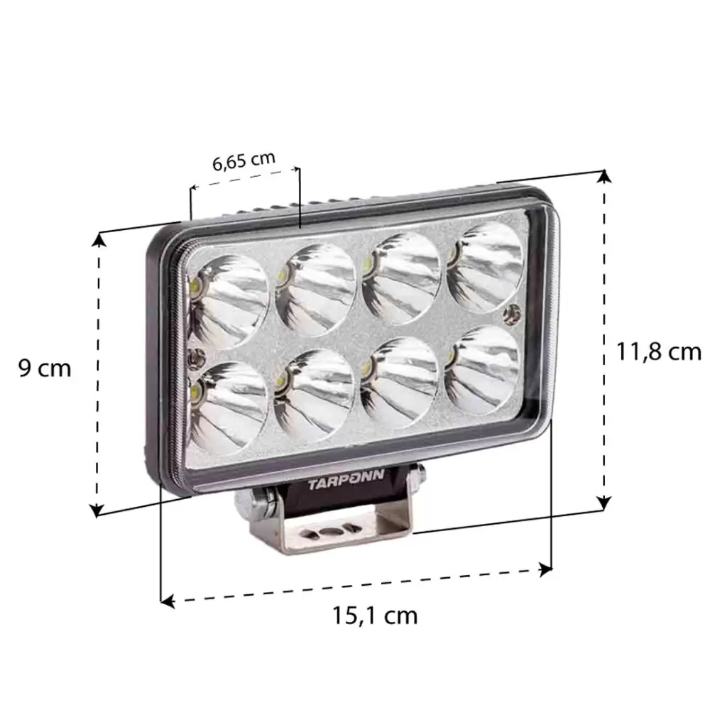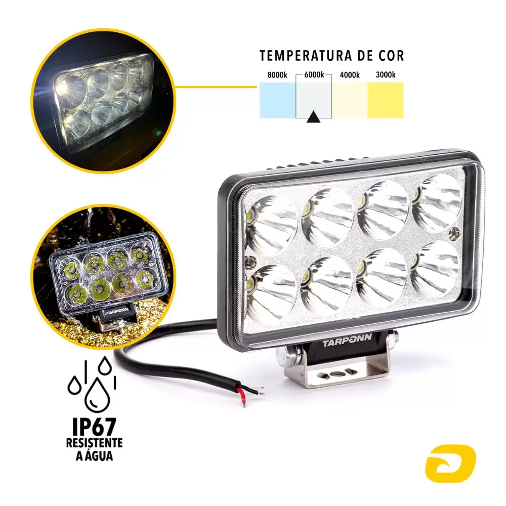 Busca resistência, modernidade e potência? Então o Farol Auxiliar TARPONN Retangular 8 LEDs 24W 9~60v 6000K é perfeito para você!