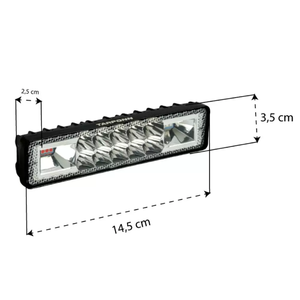 O Farol Auxiliar RT Tarponn 10 + 6 LEDs Strobe FIT é para você que busca um produto de qualidade, com preço acessível. Este farol auxiliar, feito com liga de alumínio, conta com 10 LEDs centrais fixos na cor branca que iluminam de forma contínua e 6 LEDs nas laterais, sendo 3 na cor azul e 3 na cor vermelha, que possuem a função de iluminação strobe (flash).
