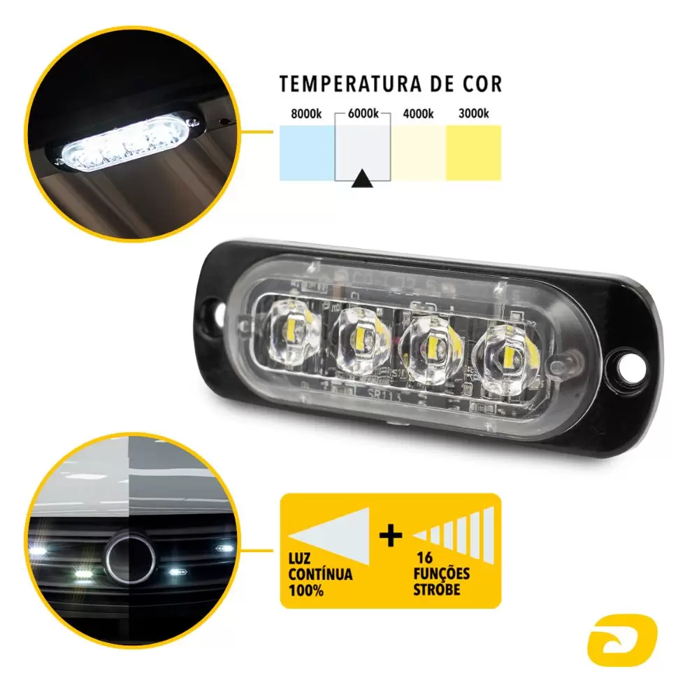 Farol Multifunção Cyber 4 LEDs +16 Strobe Tarponn IP 65 Bivolt 6000k
