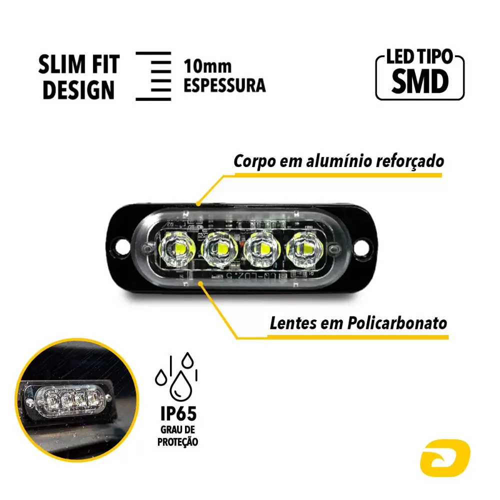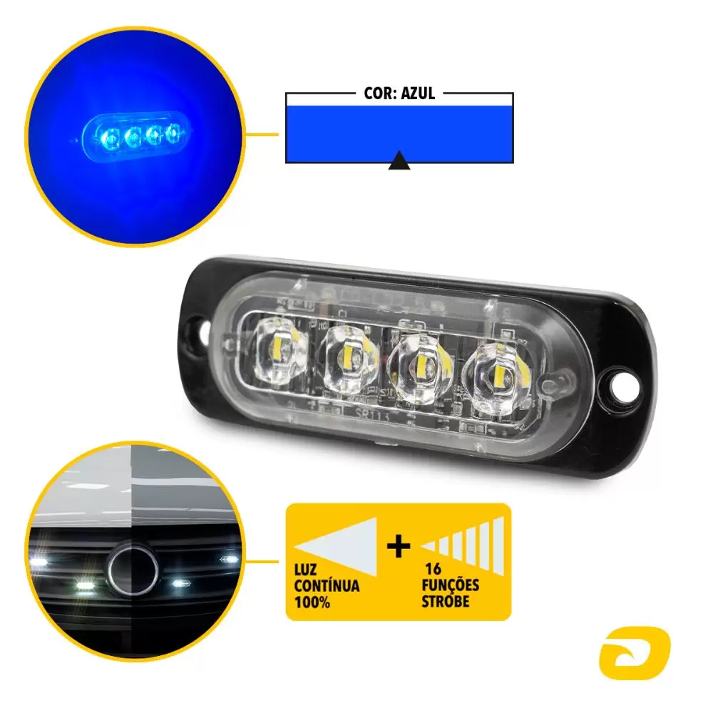 Durabilidade e iluminação superiores, assim é o Farol Strobe Cyber LED Tarponn Universal 4 LEDs IP 65 Bivolt Azul!