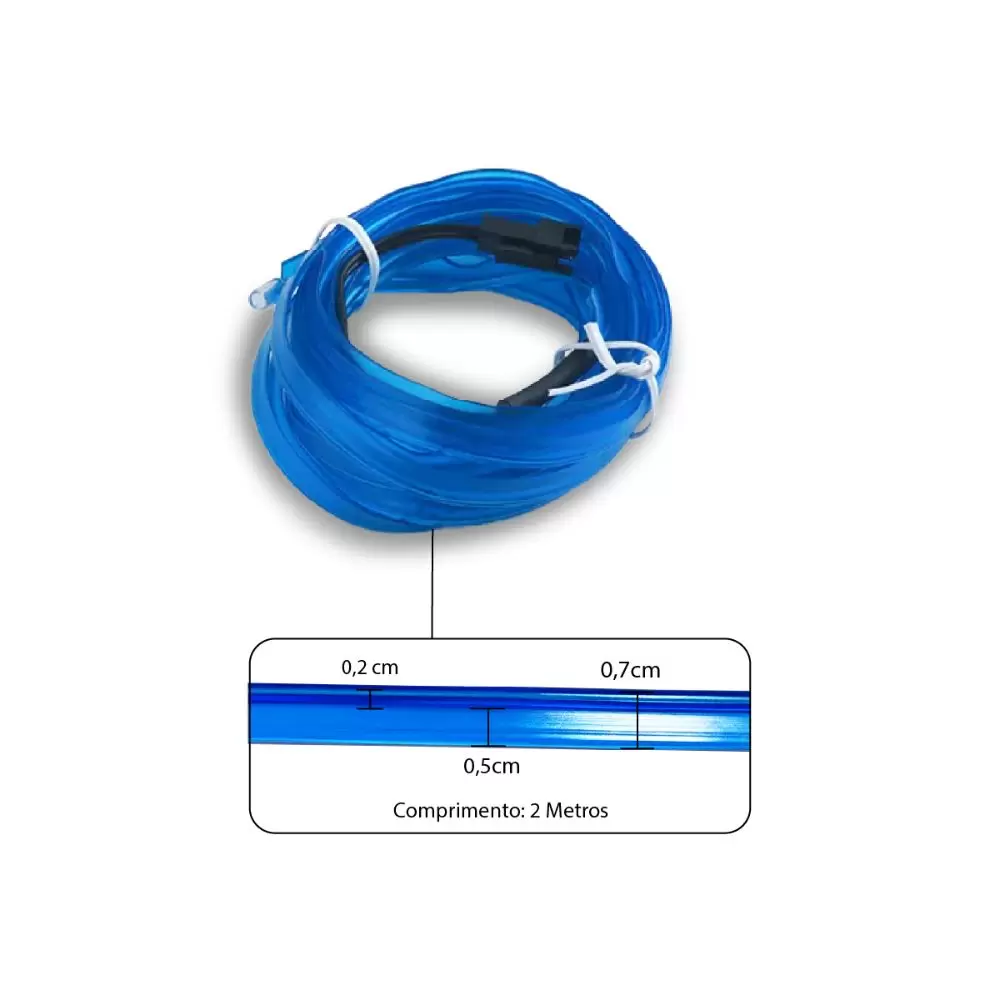 Além disso, sua durabilidade é excepcional, garantindo uma vida útil muito maior do que outras fitas no mercado. Com uma potência por metro de 0,6W, tensão de 12V, cor azul e ângulo de iluminação de 120 graus de abertura, a Fita Neon é fácil de adaptar e possui uma aplicação universal.