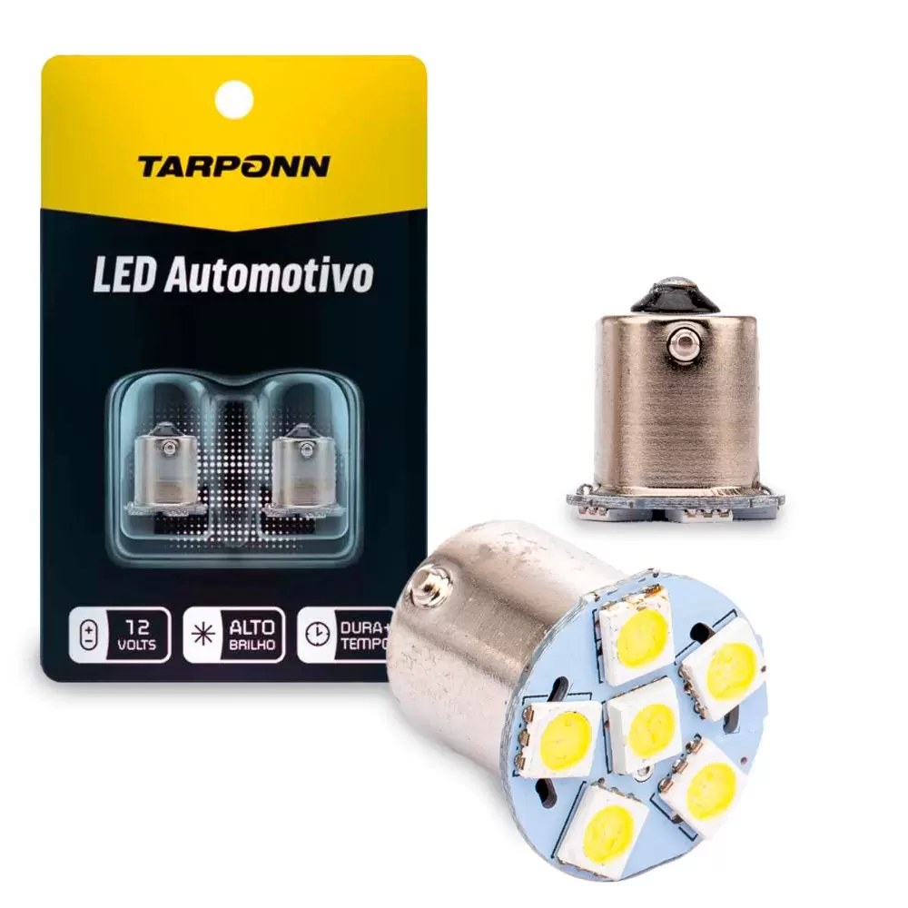 O melhor custo-benefício em iluminação automotiva está aqui com a Lâmpada Tarponn 67 Ba15S-5050-6SMD 1 Polo 12V 6000k!