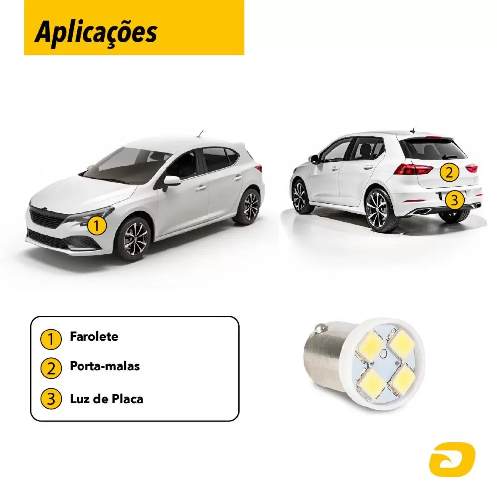 Aplicação: Farolete, luz de placa, porta-mala e luz interna