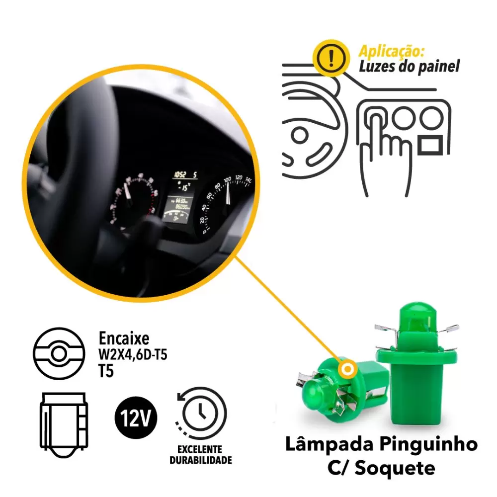 O melhor custo-benefício em iluminação automotiva está aqui. Conheça a Lâmpada Tarponn LED Pinguinho com Soquete B8,5D-T5-COB 12V!