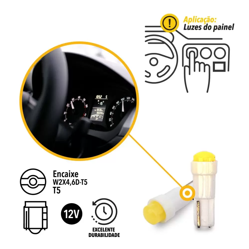 Aplicação: Painel de carroO melhor custo-benefício em iluminação automotiva está aqui com a Lâmpada Tarponn LED Pinguinho T5-COB 12v 6000k!