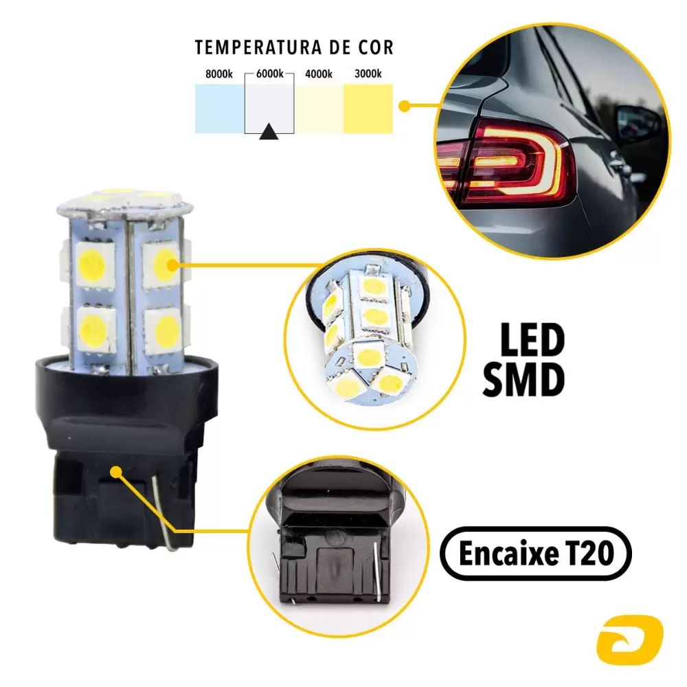 O melhor custo-benefício em iluminação automotiva está com a Lâmpada Tarponn LED T20-5050-13SMD 1 Polo 12v 6000k!