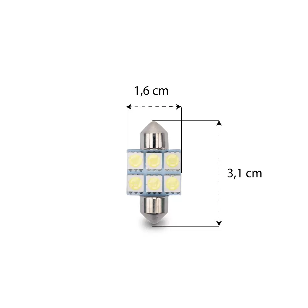 Lâmpada LED Torpedo SJ-5050-6SMD-31MM 12v 6000k