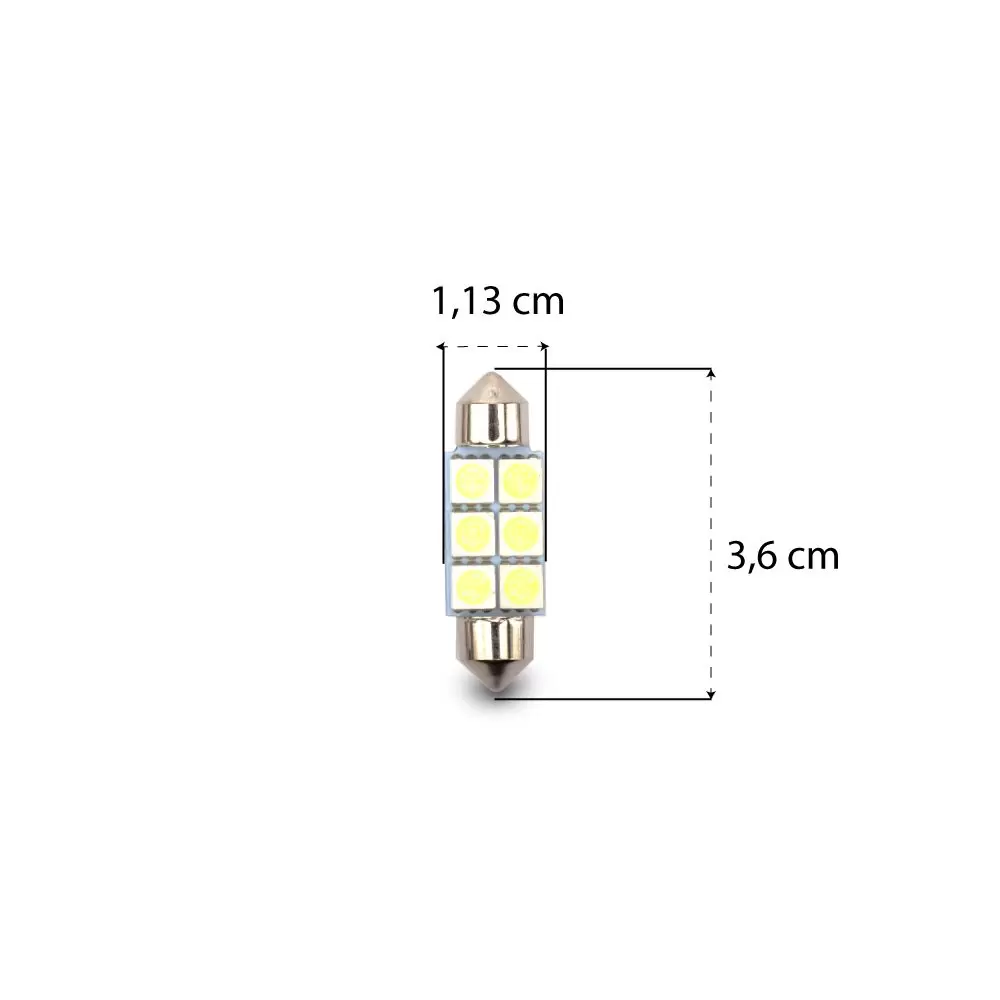 Lâmpada LED Torpedo SJ-5050-6SMD-36MM 12v 6000k