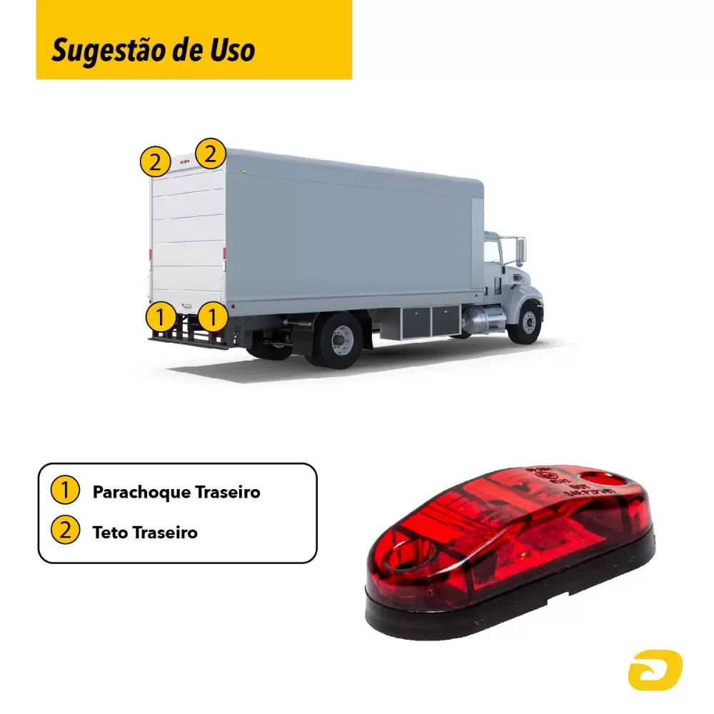Usada na lateral dianteira e parte superior do baú, tendo como principal função indicar as dimensões laterais dos veículos, tais como caminhões baú, trailer, barcos, carretas e ônibus facilitando a visibilidade à noite.