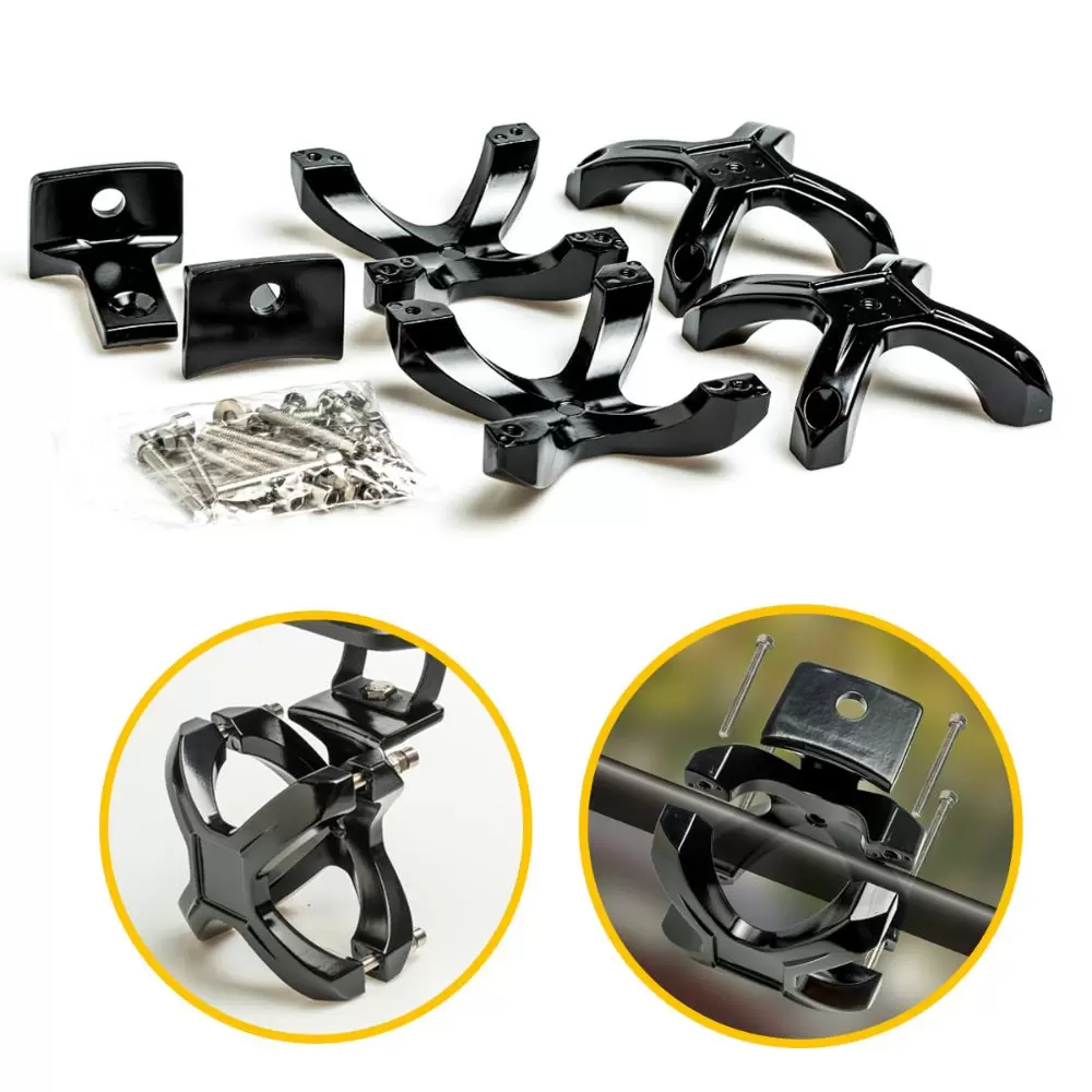 O Suportes Abraçadeira Aranha facilitam a instalação de luzes de LED adicionais em seu para-choque, para-lama, barra de proteção ou tubo de garfo com diâmetro de 1" até 2". Extremamente robustos, esses suportes são perfeitamente adaptados para uso off-road em veículos 4x4, picapes, ATVs, SSVs, máquinas agrícolas e máquinas de construção.