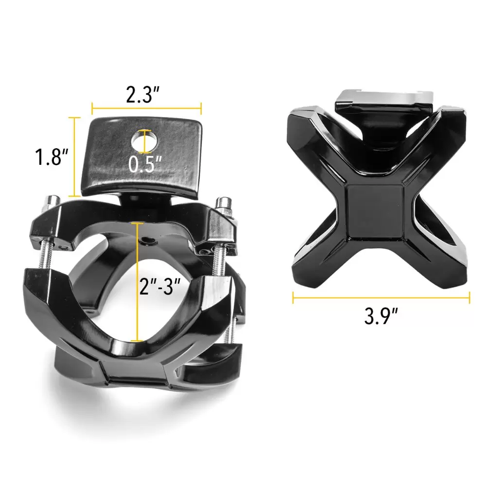 Buscando um suporte que se adapte a peças tubulares como Quebra-mato, Racks de Teto etc.? Esta é a opção perfeita para você fixar de maneira rápida e prática todos os tipos de Faróis e Barras de LED!