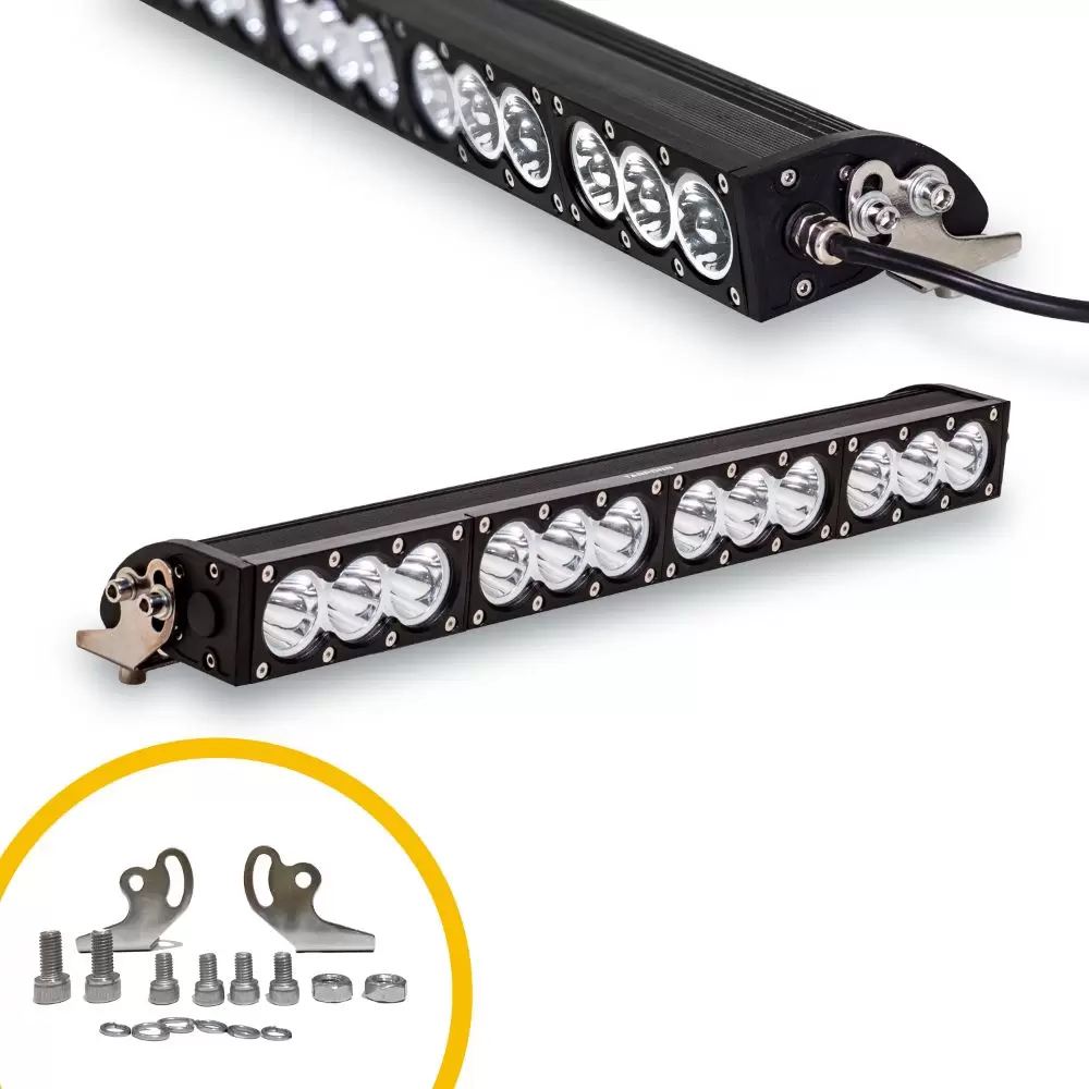 A carcaça de alumínio fundido possui grau de proteção IP68, sendo resistente à água e prevenindo problemas como corrosão e ferrugem. Ela é capaz de enfrentar qualquer tipo de lama, terra ou barro. Com acabamento fosco frontal e suporte duplo com laterais em aço ultra reforçado, a barra combina robustez com elegância. Além disso, proporciona baixo consumo de energia, maior durabilidade e iluminação superior.