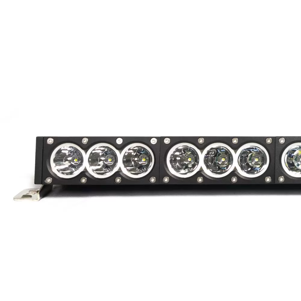 Equipada com uma linha horizontal de LEDs brancos na parte central, esta barra oferece um foco Fechado/Spot (com abertura de 30°), proporcionando uma iluminação concentrada e eficiente, capaz de iluminar longas distâncias com precisão.
