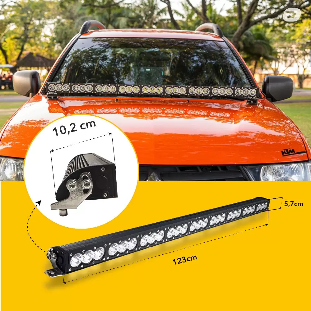 Não perca mais tempo, adquira agora a BARRA DE LED PRO 123CM 27LEDs 270W BRANCO FRIO e ilumine seu caminho com estilo e eficiência!