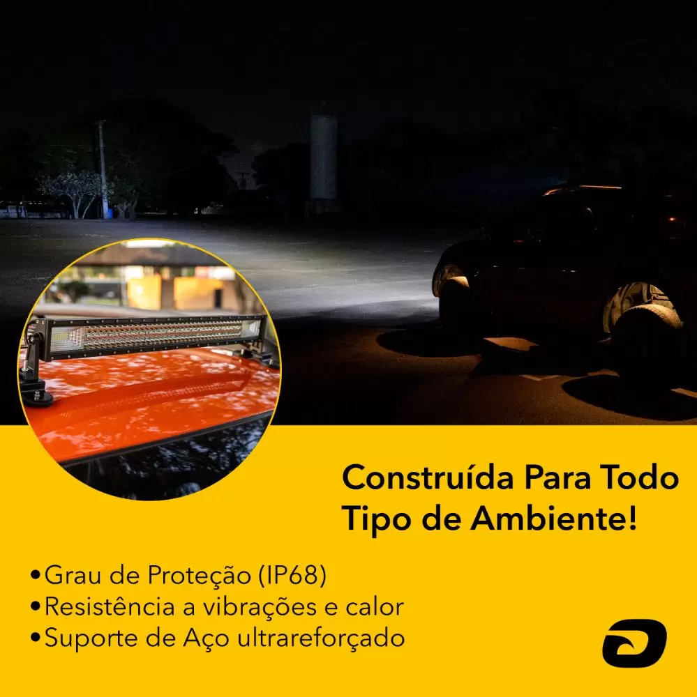 Ideal para uso em veículos off-road, barcos, caminhões, carros e máquinas agrícolas, esta barra é equipada com um driver moderno que proporciona maior resistência aos picos de tensão durante a partida do veículo, independentemente da voltagem, seja 9v, 12v, 24v ou 36v.