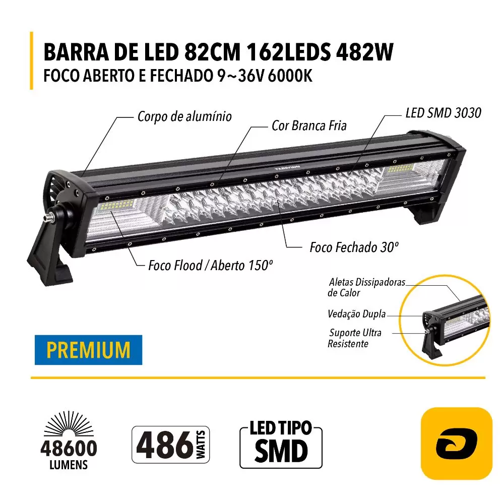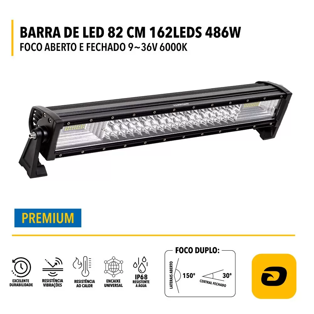 A BARRA DE LED PREMIUM 82CM 162 LEDS 486 W da Tarponn apresenta uma estrutura que entrega a união entre um design resistente e tecnologia aplicada à iluminação.