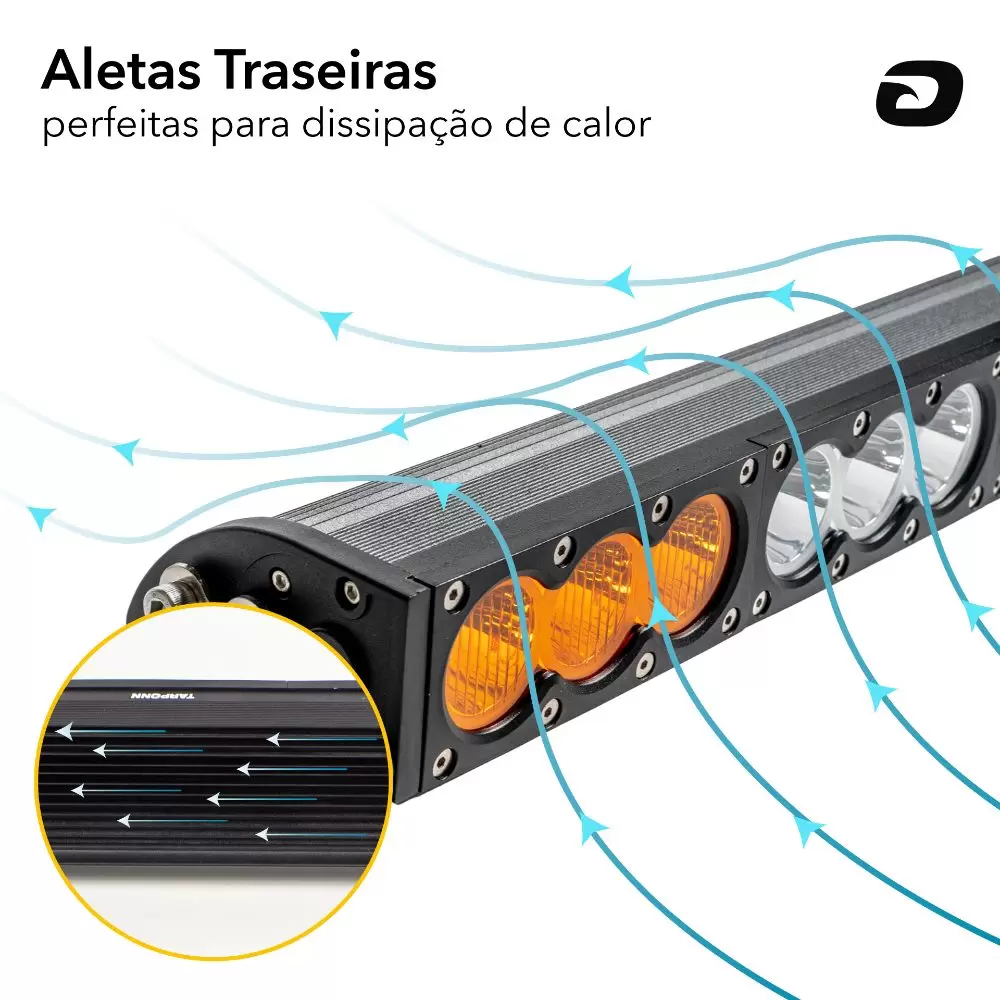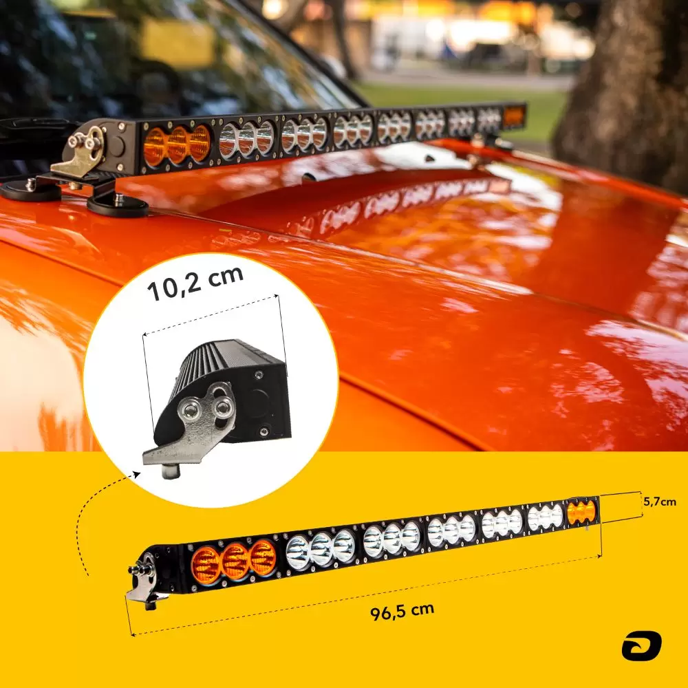 Com uma estrutura de alumínio reforçado, esta barra é feita para durar, enfrentando qualquer desafio que você encontrar pelo caminho. Para uma iluminação intensa, conta com uma linha horizontal de LEDs brancos na parte central, oferecendo um foco fechado/spot com abertura de 30°, garantindo uma luz concentrada que alcança grandes distâncias.