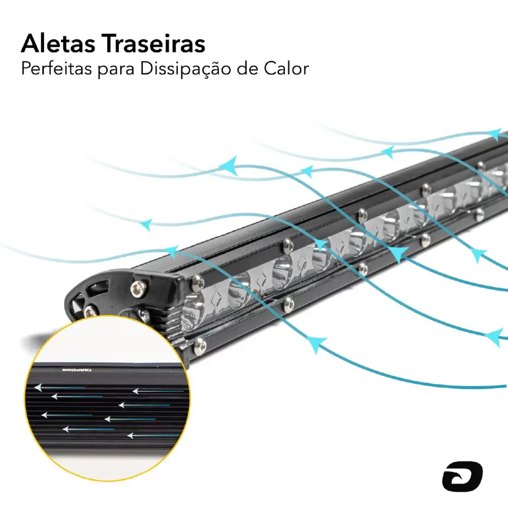 Busca uma Barra de LED que se adapte a qualquer espaço? Descubra a sofisticação e design compacto da BARRA DE LED SLIM CYBER 65,5CM 24LEDS 72W FOCO ABERTO 9~36V BRANCO FRIO 6.000K da Tarponn oferecendo uma estrutura robusta de alumínio reforçado, garantindo uma fácil instalação, durabilidade e resistência.