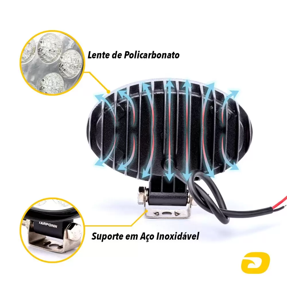 Oferece baixo consumo de energia, alta durabilidade e iluminação superior aos faróis que utilizam lâmpadas incandescentes ou halógenas. Além disso, possui lentes em Policarbonato, suporte de aço inoxidável, vedação dupla e tensão de 9 a 60V.