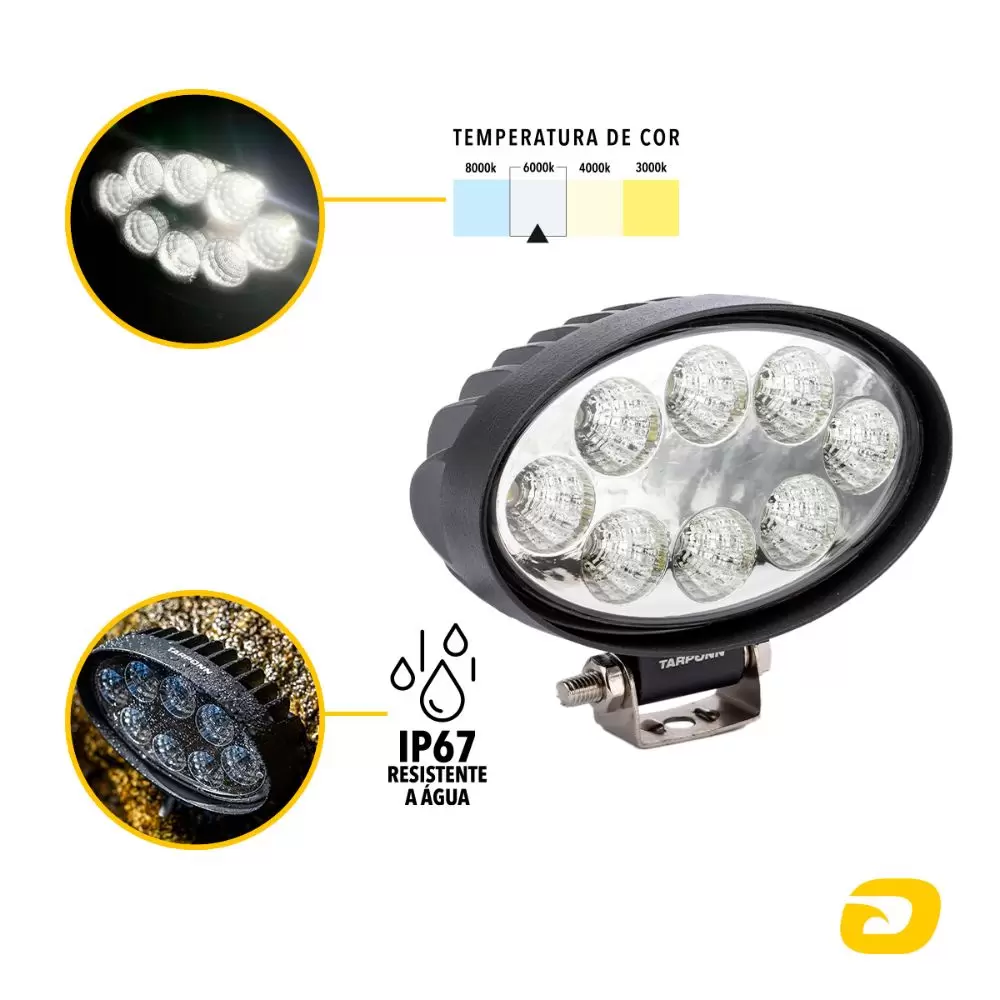 Modelo Oval e fácil de instalar, o Farol Auxiliar TARPONN Oval 8 LEDs 24W 9~60V 6000K