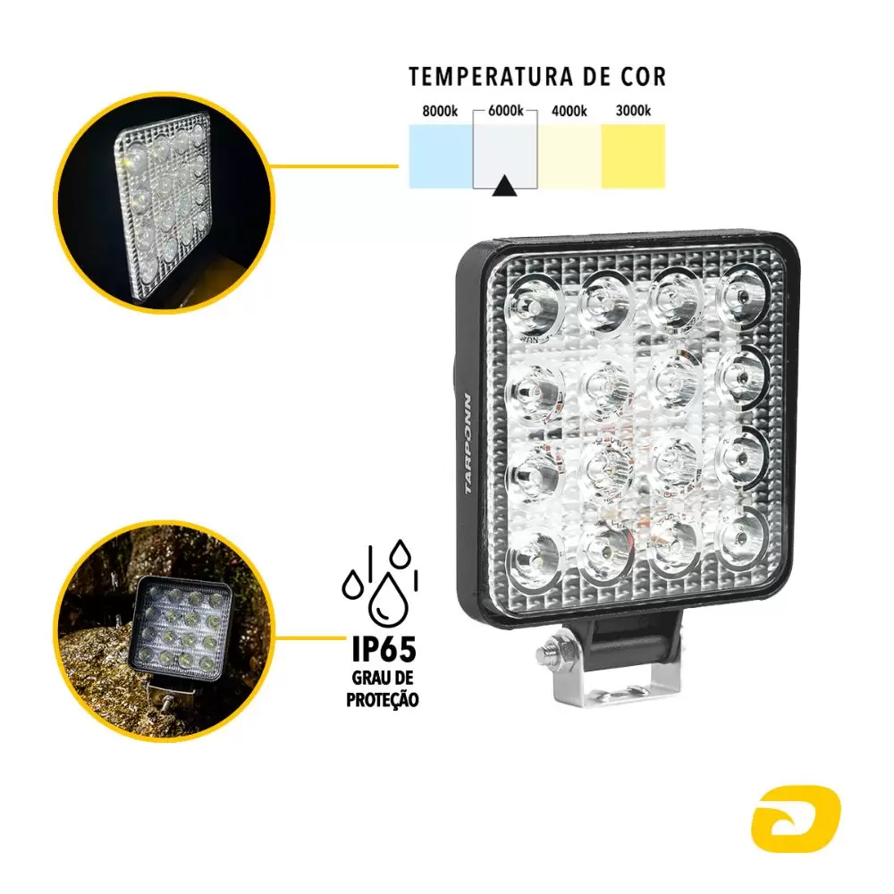 Está buscando um farol auxiliar retangular de qualidade, com um preço acessível? O Farol Auxiliar QD 16 LEDs SLIM FIT da Tarponn é o que você precisa! Feito com liga de alumínio, tem 16 LEDs tipo SMD com iluminação branca fria (6000K) e design slim com encaixe universal, indicado para Off-Roads, Barcos, Caminhões, Máquinas Agrícolas ou demais veículos.