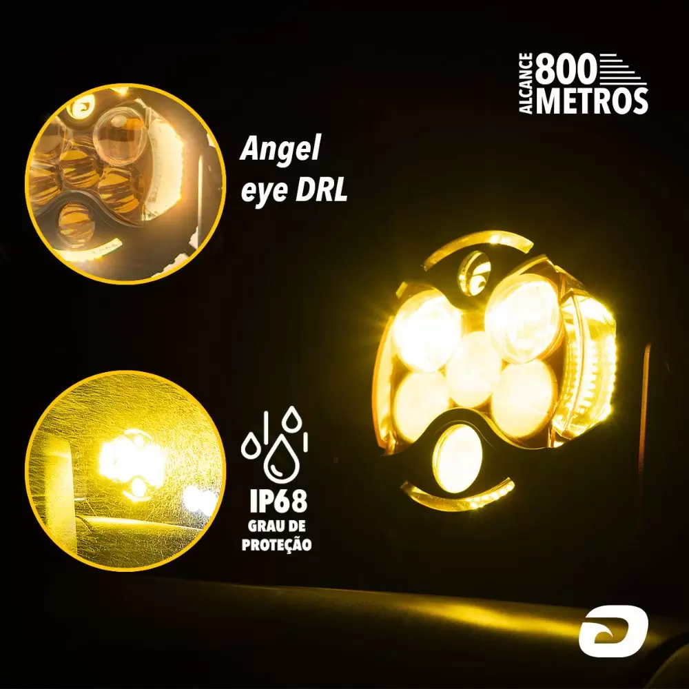 Certificado com IP68 à prova d'água, o farol enfrenta condições adversas sem problemas. Com dupla vedação para proteção contra umidade, poeira e sujeira, ele pode ser usado em uma variedade de veículos off-road. Possui suporte em aço inoxidável resistente e conector DT, para uma fixação segura.