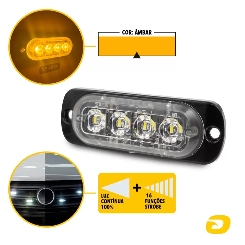 Durabilidade e iluminação superiores, assim é o Farol Multifunção CYBER 4 LEDs +16 Strobe Bivolt Âmbar!