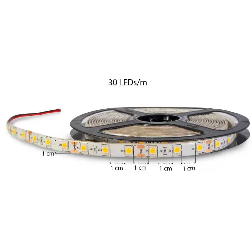Fabricada com o LED SMD 5050, possui 05 metros e forte iluminação, sendo 14,4w de potência por metro de fita e um equipamento de iluminação em 120 graus.