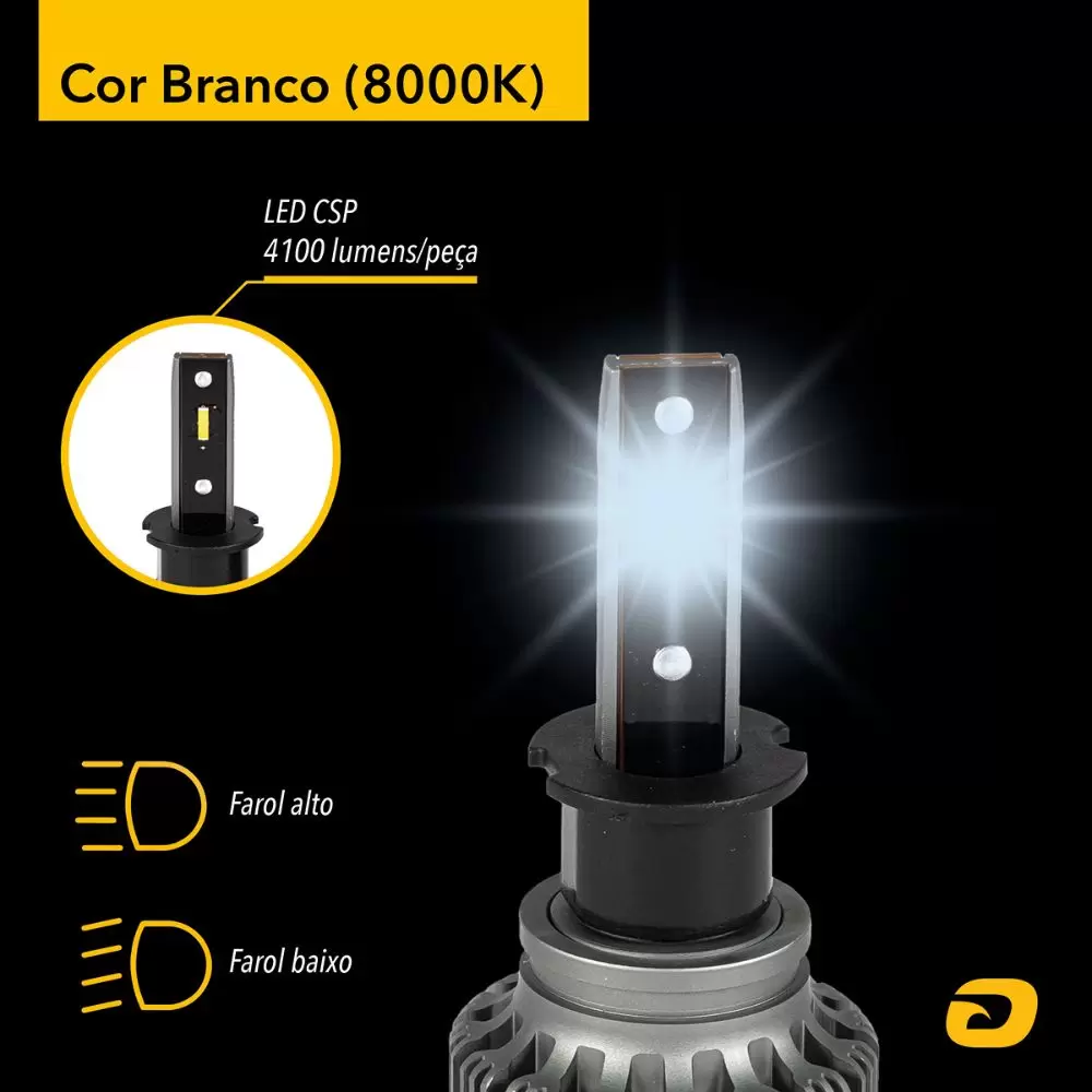 Se você deseja excelência quando o assunto é qualidade máxima, o Kit Lâmpada LED SKY 8K H3 Premium chegou para ser a queridinha. Este produto da linha Premium Tarponn, tem todo o seu acabamento galvanizado e cromado, com o corpo em alumínio de aviação. Além disso, possui a moderna tecnologia LED CSP, que aumenta a intensidade luminosa e diminui possíveis pontos de falha. O produto ainda é resistente a vibrações, ao calor, contém driver incorporado e dissipador de calor em alumínio de aviação. A iluminação deste kit é na cor Branca Azulada (8000k), com fluxo luminoso de 4100 lumens. Este produto é aplicável para farol alto e baixo, com linha de corte para melhorar sua performance nas estradas por meio de uma melhor iluminação.