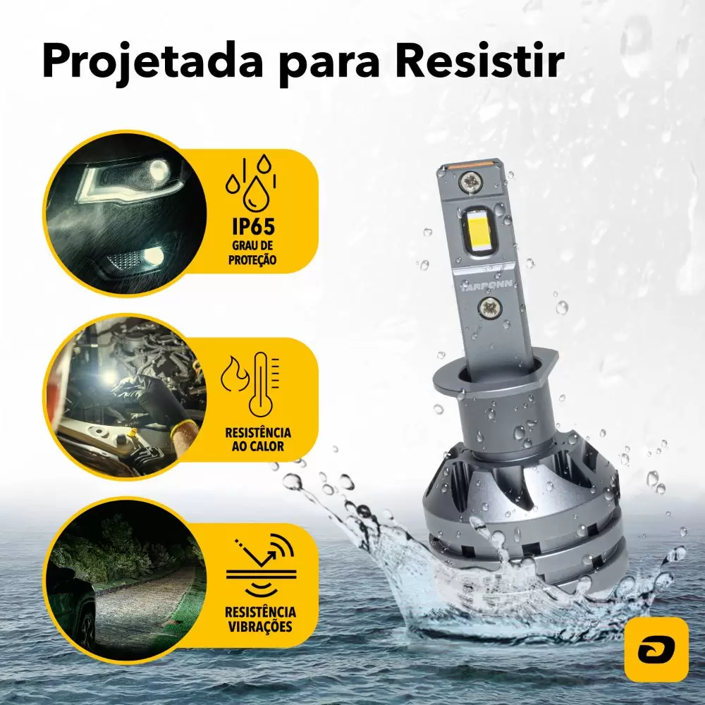 Equipado com a última geração de LEDs Coreanos CSP 3570, o TX5 PRO oferece uma intensidade luminosa superior, aumentando significativamente a visibilidade nas estradas. Seu design compacto, 20% menor que outros modelos do mercado, facilita a instalação e garante um ajuste perfeito em diversos tipos de veículos. Além disso, o kit inclui um driver Canbus externo que corrige códigos de erro na maioria dos painéis de automóveis nacionais (exceto Ranger e Troller), eliminando falhas de comunicação.