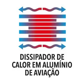 De ligação luminosa e saída por um fluxo alto, não necessita de cooler, uma vez que possui Corpo de Alumínio.