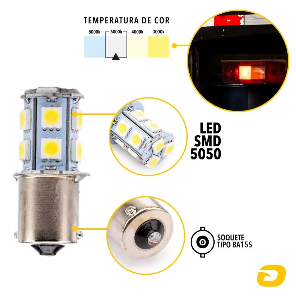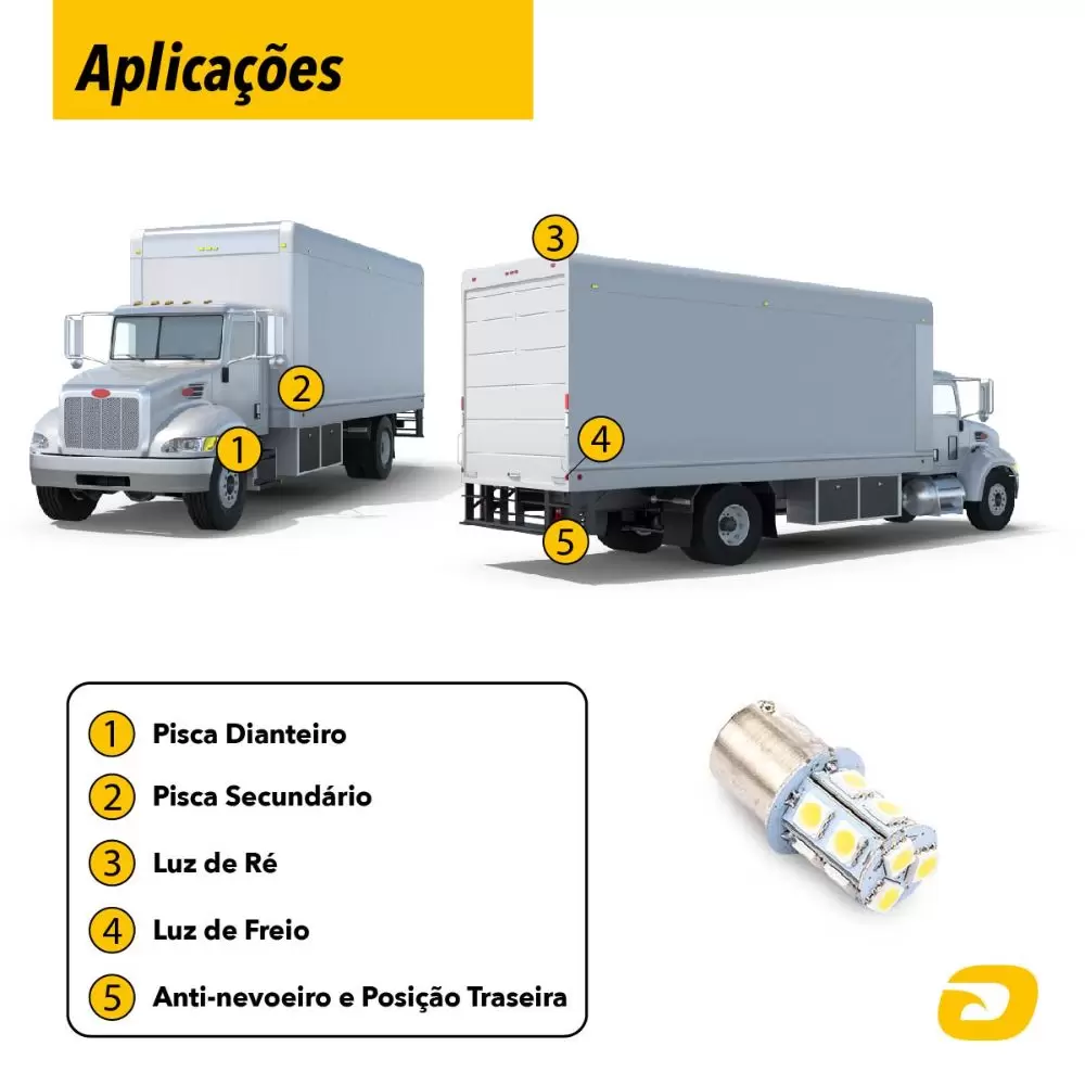 Além disso, a lâmpada de polo possui a Ba15S 1, podendo ser instalada em luz de ré e lanterna traseira.