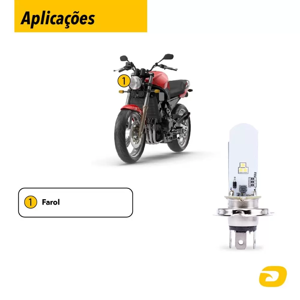 Aplicação: Indicada para farol principal de motocicletas (farol baixo e farol alto)