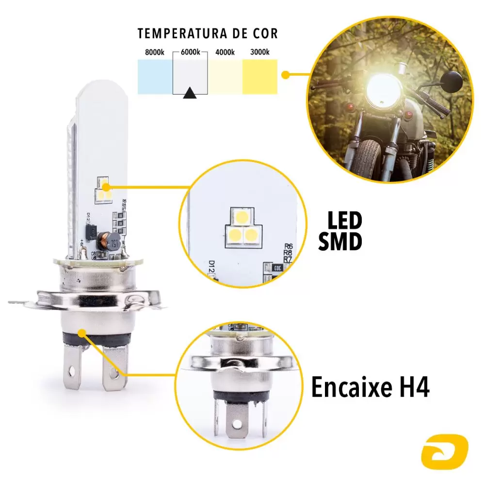Até a vida útil da bateria da sua moto será maior com a Lâmpada LED Motocycle SMD Tarponn H4!