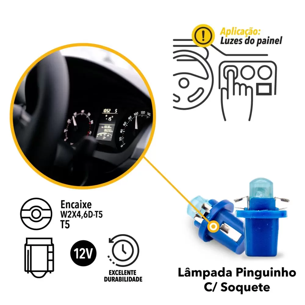 O melhor custo-benefício em iluminação automotiva está aqui. Conheça a Lâmpada Tarponn LED Pinguinho com Soquete B8,5D-T5-COB 12V!