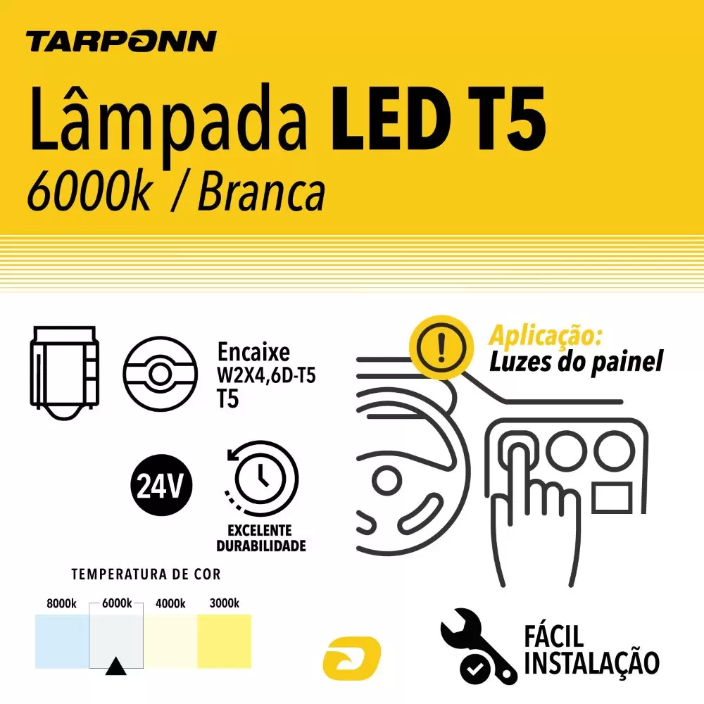 Agora sim você terá mais economia na sua iluminação automotiva com a Lâmpada Tarponn LED Pinguinho T5-COB 24v 6000k!