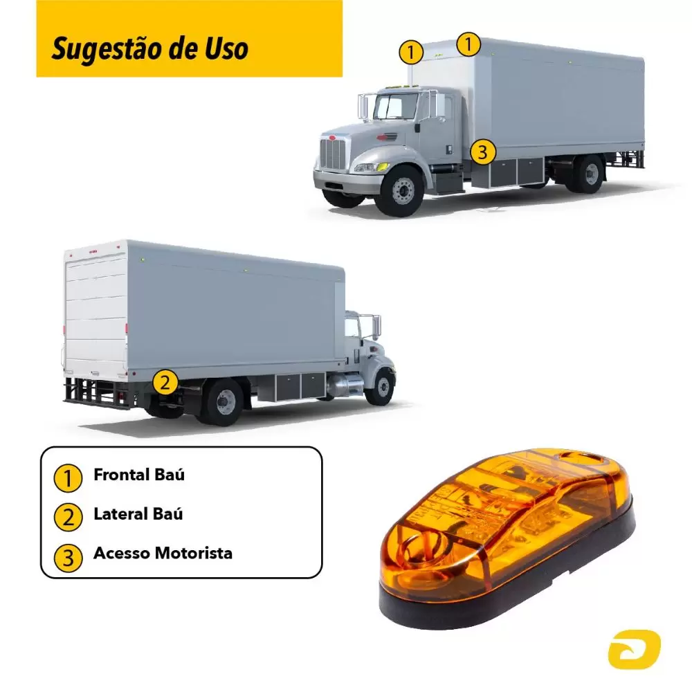 Usada na lateral dianteira e parte superior do baú, tendo como principal função indicar as dimensões laterais dos veículos, tais como caminhões baú, trailer, barcos, carretas e ônibus facilitando a visibilidade à noite.