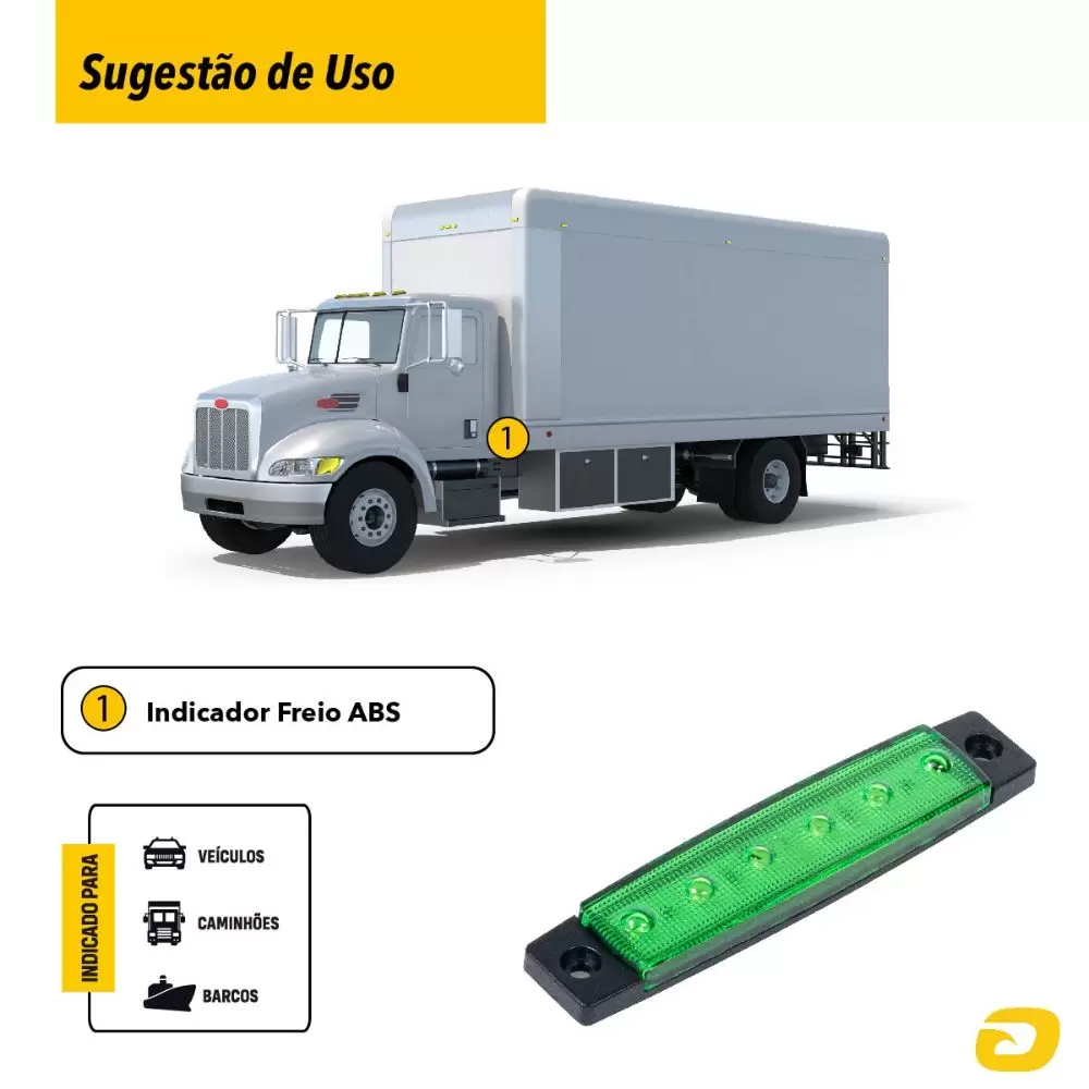 Com um alto brilho e distribuição uniforme da iluminação, a Lanterna Lateral é a escolha perfeita para quem busca uma iluminação de qualidade e durabilidade superiores. Além disso, ela é fácil de adaptar em diferentes lugares do seu veículo, podendo ser usada em iluminação de porta-malas, pisca auxiliar, caminhões baú, trailer, barcos, baú, carretas, ônibus, placa de licença entre muitas outras utilidades.
