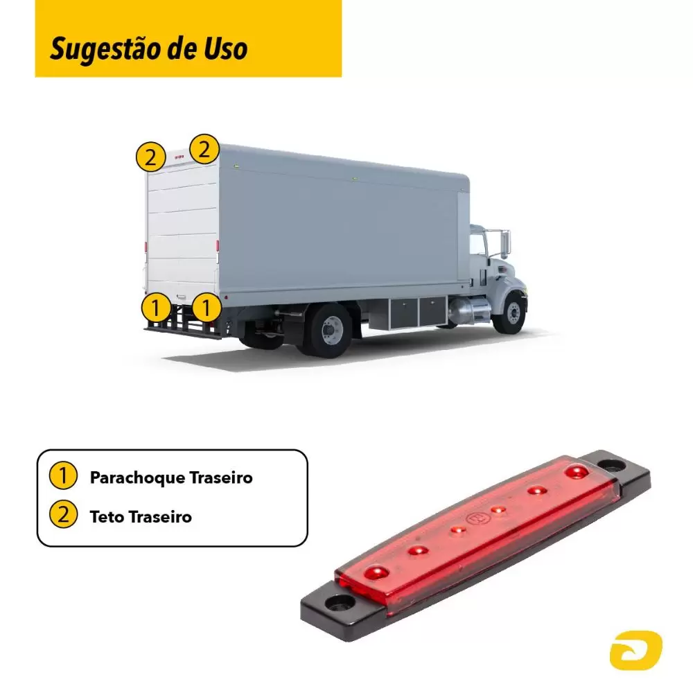 Com um alto brilho e distribuição uniforme da iluminação, a Lanterna Lateral é a escolha perfeita para quem busca uma iluminação de qualidade e durabilidade superiores. Além disso, ela é fácil de adaptar em diferentes lugares do seu veículo, podendo ser usada em iluminação de porta-malas, pisca auxiliar, caminhões baú, trailer, barcos, baú, carretas, ônibus, placa de licença entre muitas outras utilidades.