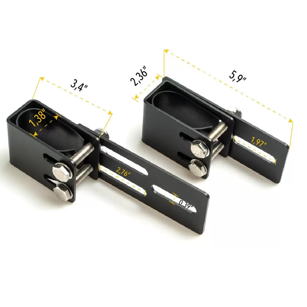 Construído com materiais robustos e com um elegante acabamento preto fosco, nossos suportes são sinônimos de durabilidade e estilo. Com tecnologia antifricção integrada, proporcionam estabilidade excepcional e uma montagem firme, enquanto a placa acolchoada garante a proteção da superfície do seu veículo.